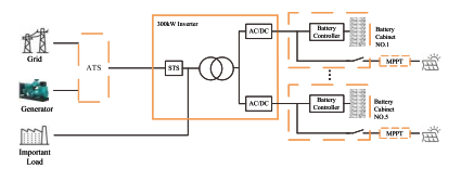 Характеристика Системата използва модулни инверторни модули в паралелна конфигурация, където DC входът на всеки инверторен модул съответства на специален шкаф за батерии, позволяващ управление на клъстер за елиминиране на циркулиращите токове между тях струни за батерии. AC/DC захранващите модули поддържат гъвкаво внедряване както в количество, така и в номинална мощност, с максимален капацитет от 60kW модули в паралел от 5 блока конфигурация. AC изходът от захранващите модули се доставя чрез трансформатор изолиран изходен етап, захранващ товара със силно съпротивление токов шок. Хибридният ESS използва DC-свързана фотоволтаична интеграция, постигайки висока ефективност на преобразуване на енергия и оптимизиран за сценарии извън мрежата с PV генериращ капацитет над търсенето на натоварване; MPPT контролери с рейтинг за работа на открито интегрирайте функционалностите на комбинатор и MPPT в един заздравен корпус. Пълната система включва опция за дизелов генератор ATS, 300kW хибрид инвертор, PV MPPT контролер и система за съхранение на енергия от батерии.